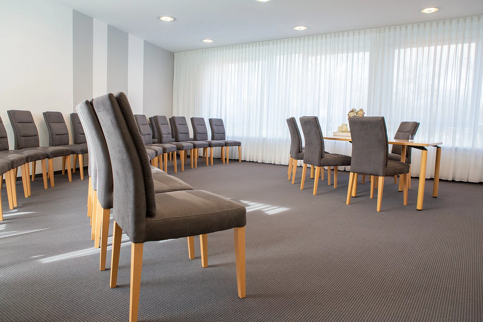 Im eigenen Gebäudetrakt des Amtsgebäudes befindet sich das modern eingerichtete Trauzimmer mit Platz für 30 Personen (erweiterbar auf bis zu 34 Personen). Der Zugang erfolgt über einen separaten Eingang mit Vorraum, welcher bei schlechtem Wetter auch zum Aufenthalt geeignet ist.